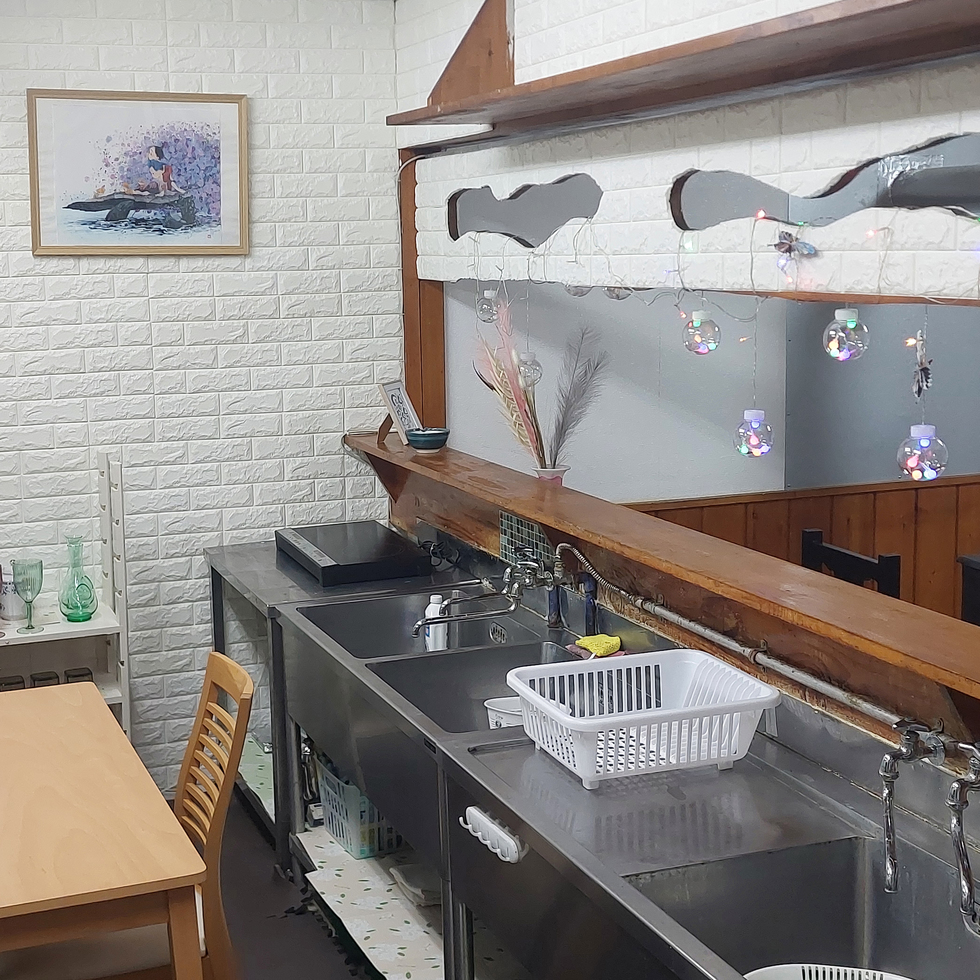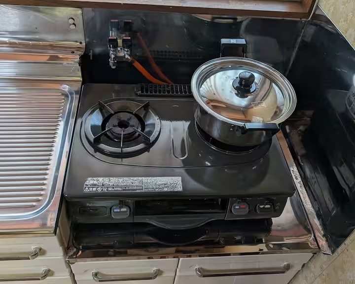 煮炊きでも十分なガスコンロ でクッキング調理用品完備。